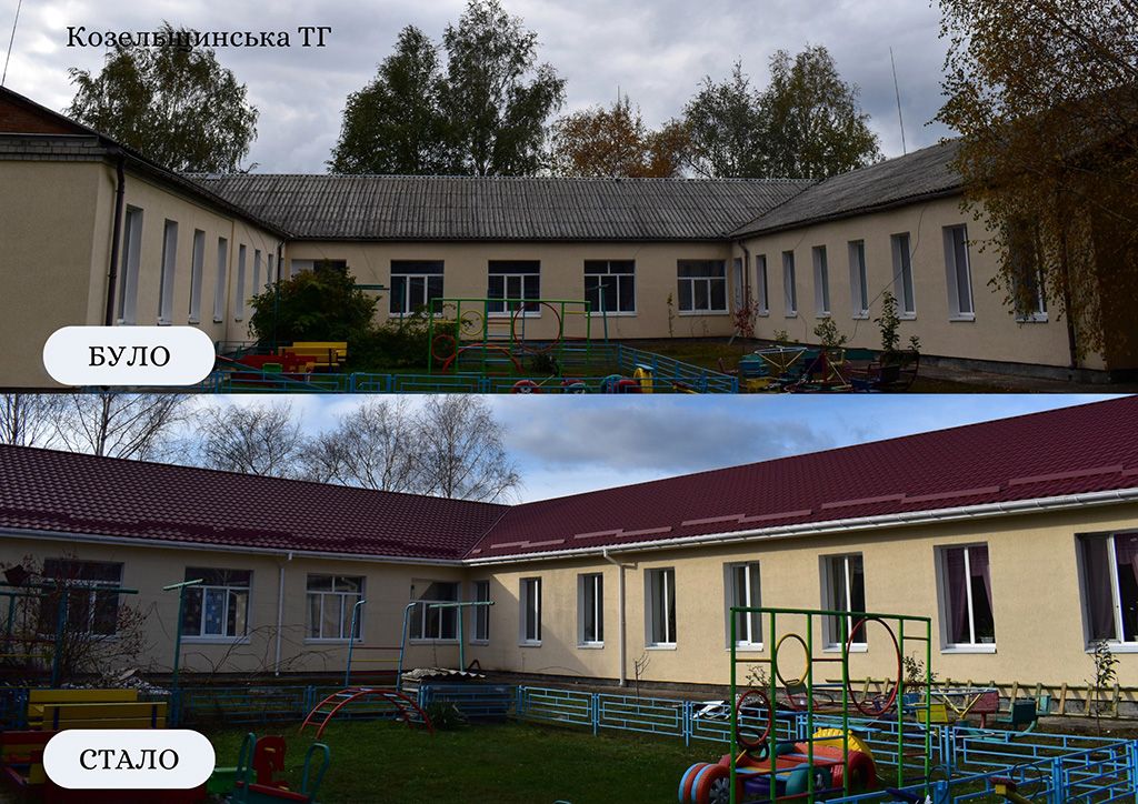 У громаді продовжують реалізовувати програму термомодернізації закладів освіти. Цього разу капітально відремонтували покрівлю на будівлі Козельщинського дитячого садка.