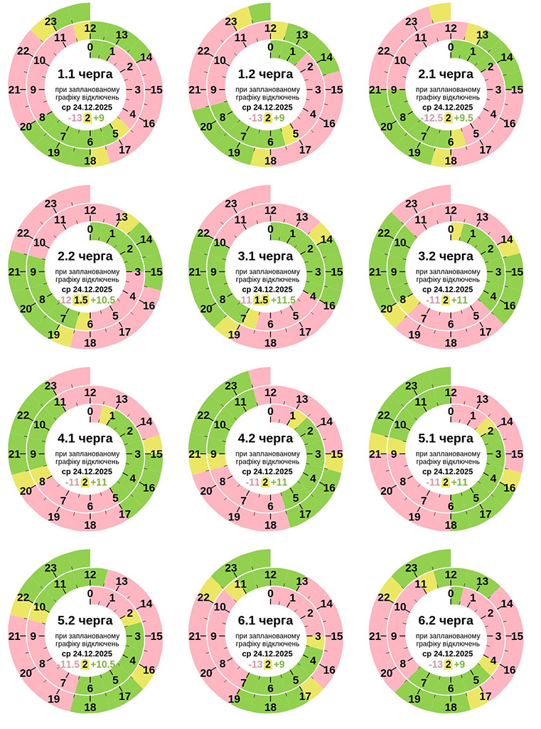 У Полтавській області 24 грудня 2025 року на Полтавщині буде застосовано графік погодинного відключення електроенергії.