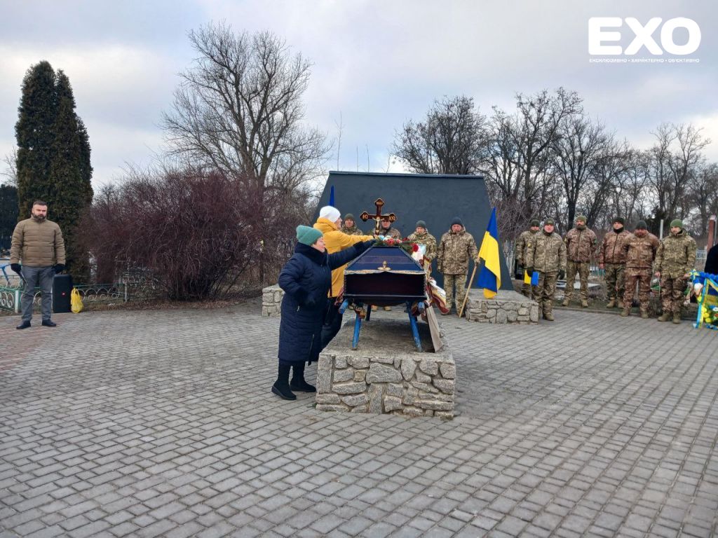 Близько сотні кобелячан, не зважаючи на мороз, прийшли 12 січня на міське кладовище, де відбулася траурна церемонія прощання із сержантом ЗСУ Дмитром Гречаним.