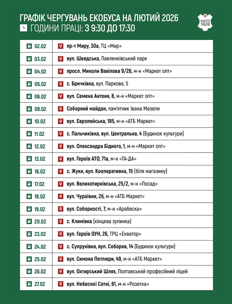 2 лютого у Полтавській громаді розпочав свою роботу екобус, який приймає небезпечні відходи, що потребують спеціальної переробки.