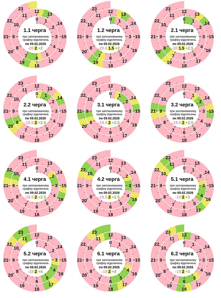У Полтавській області 9 лютого 2026 року на Полтавщині буде застосовано графік погодинного відключення електроенергії.
