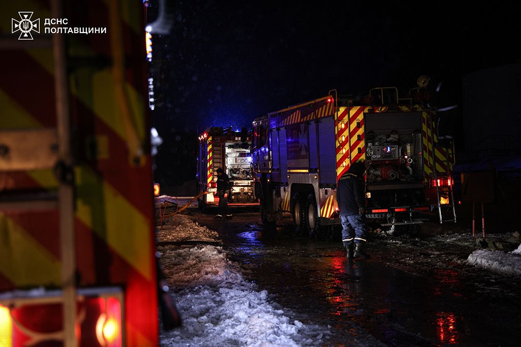 У ніч на 8 лютого ворог завдав удару по промисловому об’єкту на території Миргородського району Полтавської області. Внаслідок обстрілу на підприємстві виникли пожежі на кількох локаціях.