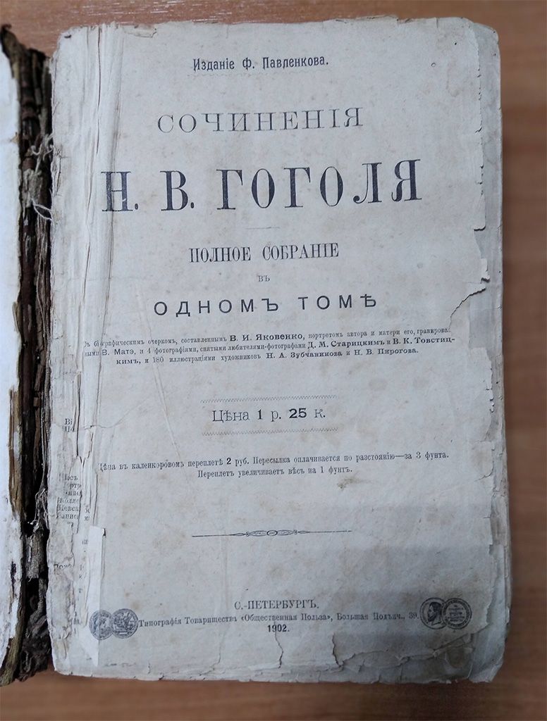 — Цікаво, що мені не доводилося і до цього, і пізніше бачити повну збірку творів Миколи Гоголя в одному томі. А тут якраз вся творчість видатного письменника в одній книзі. Дуже цікаві в цій книзі ілюстрації. Є навіть портрет Миколи Гоголя, який у свій час він забороняв публікувати.