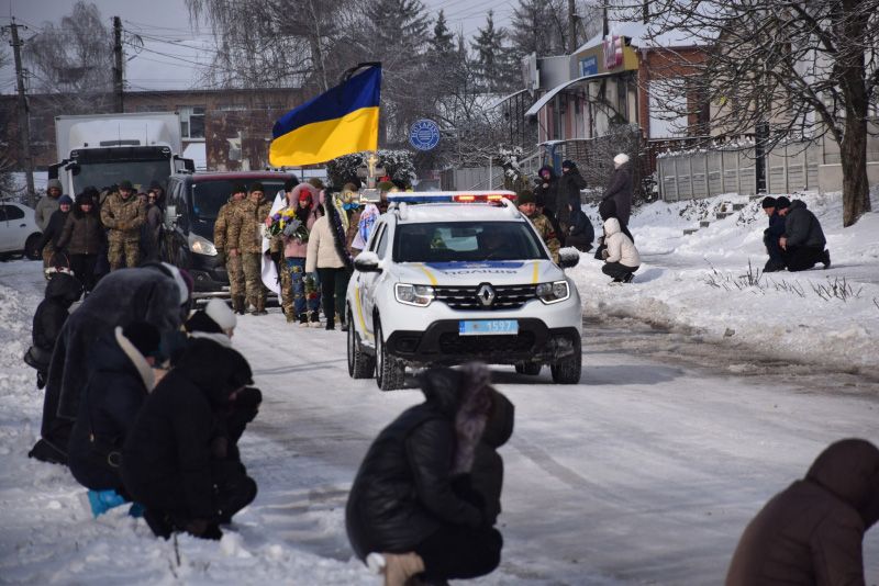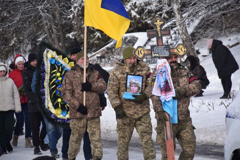 Після цього жалобна процесія пішою ходою рушила до пам’ятного знаку Героям Небесної Сотні. У пронизливій тиші відбулася урочиста церемонія прощання. Поховали воїна на центральному кладовищі рідного селища.