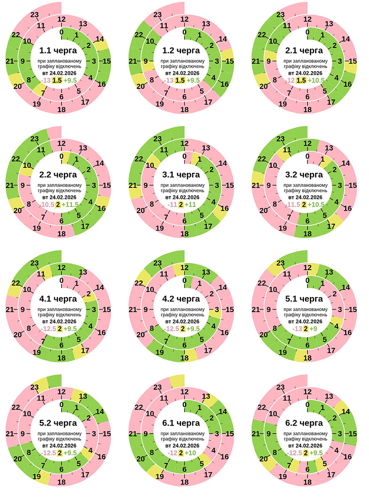 У Полтавській області 24 лютого 2026 року на Полтавщині буде застосовано графік погодинного відключення електроенергії.