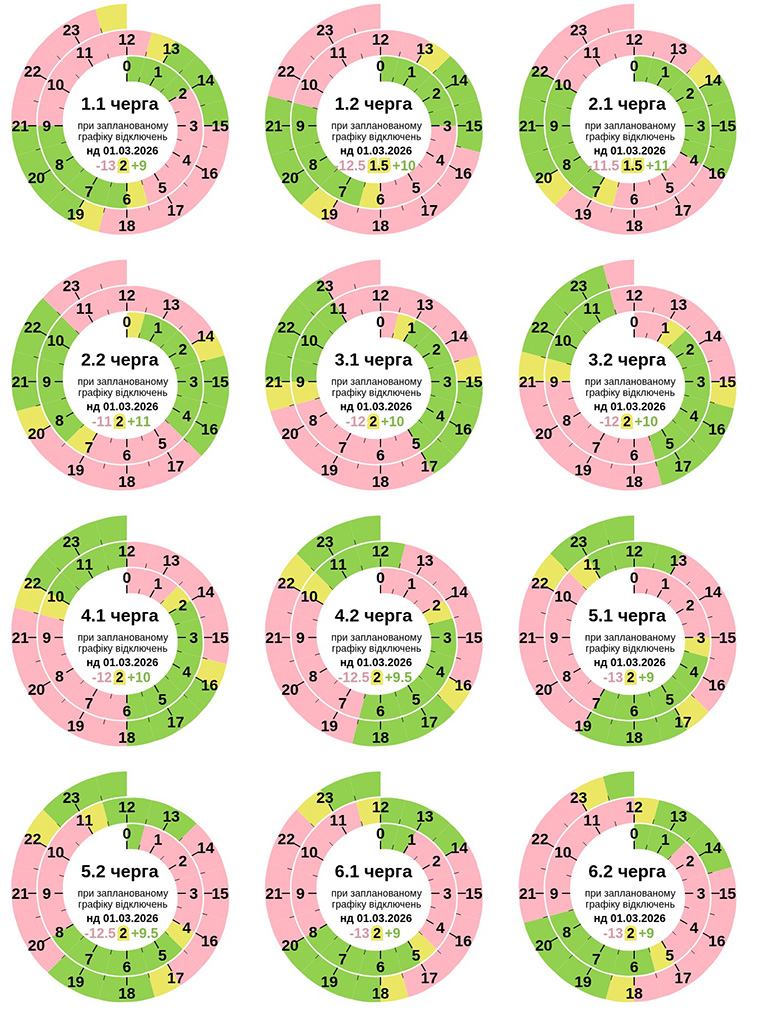 У Полтавській області 1 березня 2026 року на Полтавщині буде застосовано графік погодинного відключення електроенергії.