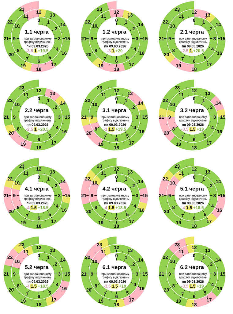 У Полтавській області 9 березня 2026 року на Полтавщині буде застосовано графік погодинного відключення електроенергії.