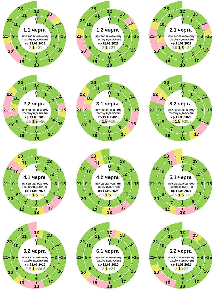 - з 08:00 по 16:00 запроваджений ГПВ в обсязі 0.5 черг.