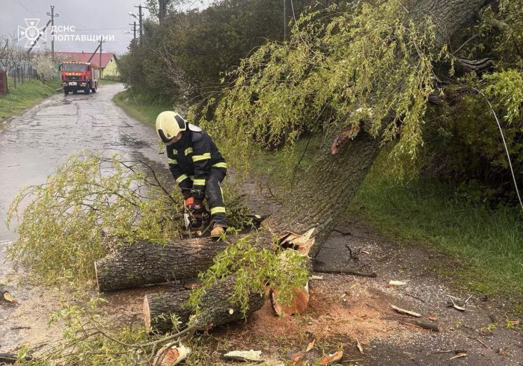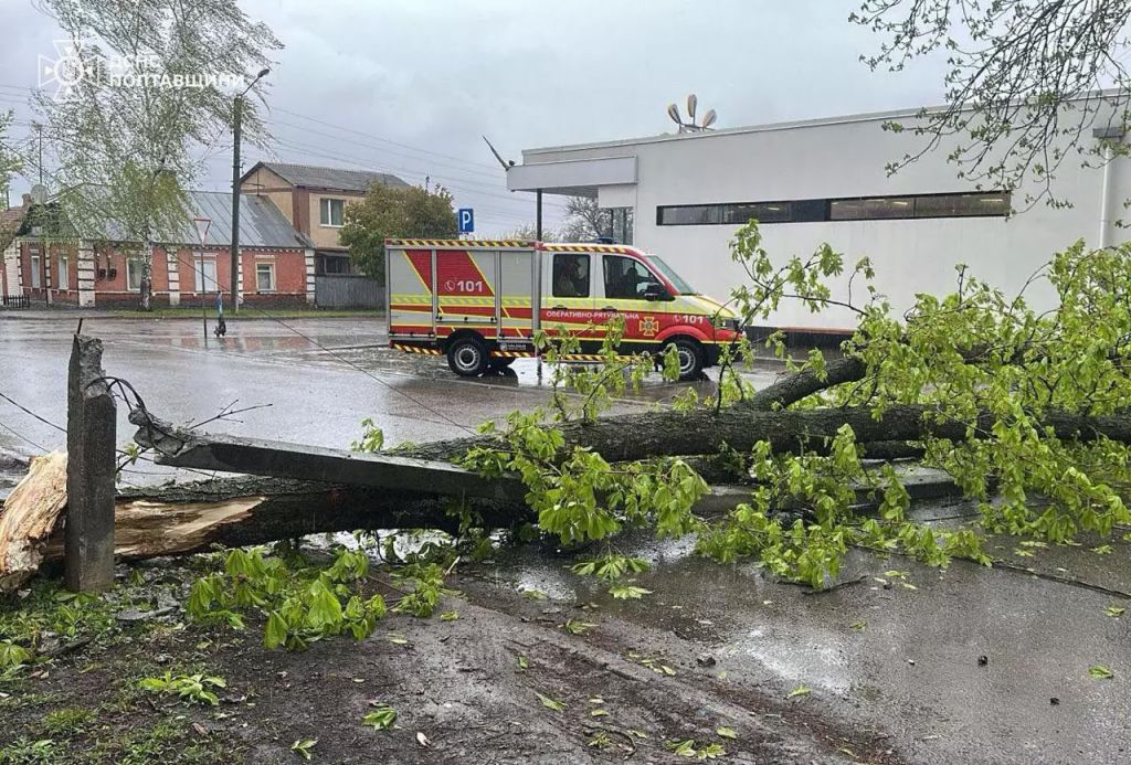За інформацією ДСНС Полтавщини, 26 квітня через шквальний вітер у регіоні сталися перебої з електропостачанням, падіння дерев та пошкодження будівельних конструкцій.