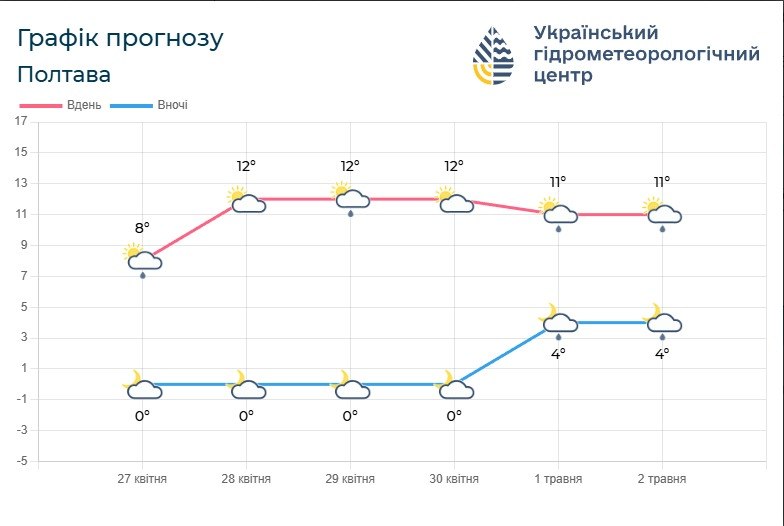 За інформацією Полтавського гідрометцентру, регіон і надалі перебуватиме під впливом повітряної маси з північного заходу. Це означає, що ще один тиждень триматиметься прохолодна погода із заморозками вночі та невисокими денними температурами.