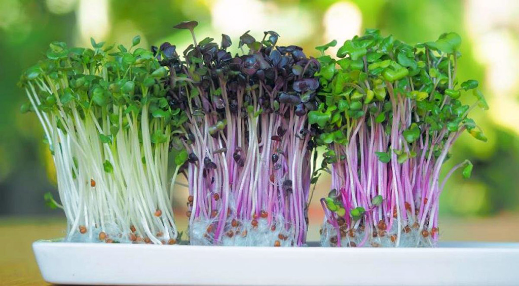 Мікрозелень (крес-салат, гірчиця). Їм вистачає тижня, щоб стати їстівними. Оскільки вони ростуть швидко, рослинам не страшно, якщо фітолампа працює лише кілька годин на добу.