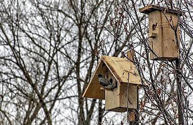 Повісьте шпаківні. Птахи — головні помічники садівників. Вони харчуються комахами-шкідниками та їхніми личинками. Це бажані гості у будь-якому саду. Щоб вони частіше відвідували вашу ділянку, розвісьте кілька годівниць із зерном.